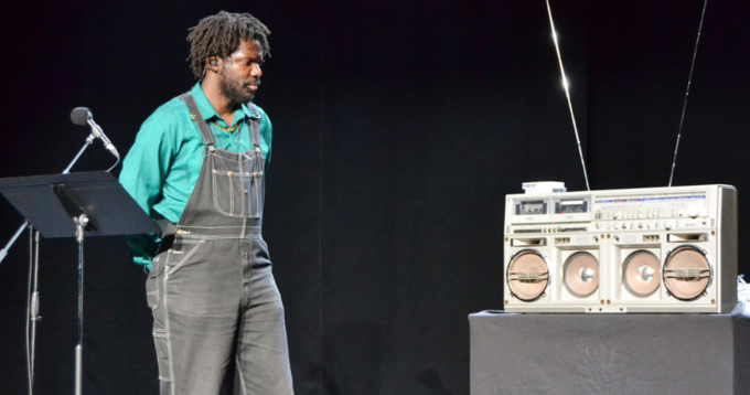 Accompagné seulement de sa musique et de sa présence hypnotique, l'acteur a embarqué les élèves dans un récit mêlant rap, archives sonores de la presse et des thèmes forts comme l'identité, la famille et la quête de soi dans le sentiment d'être en "entre-deux", un peu en France et un peu au Congo.